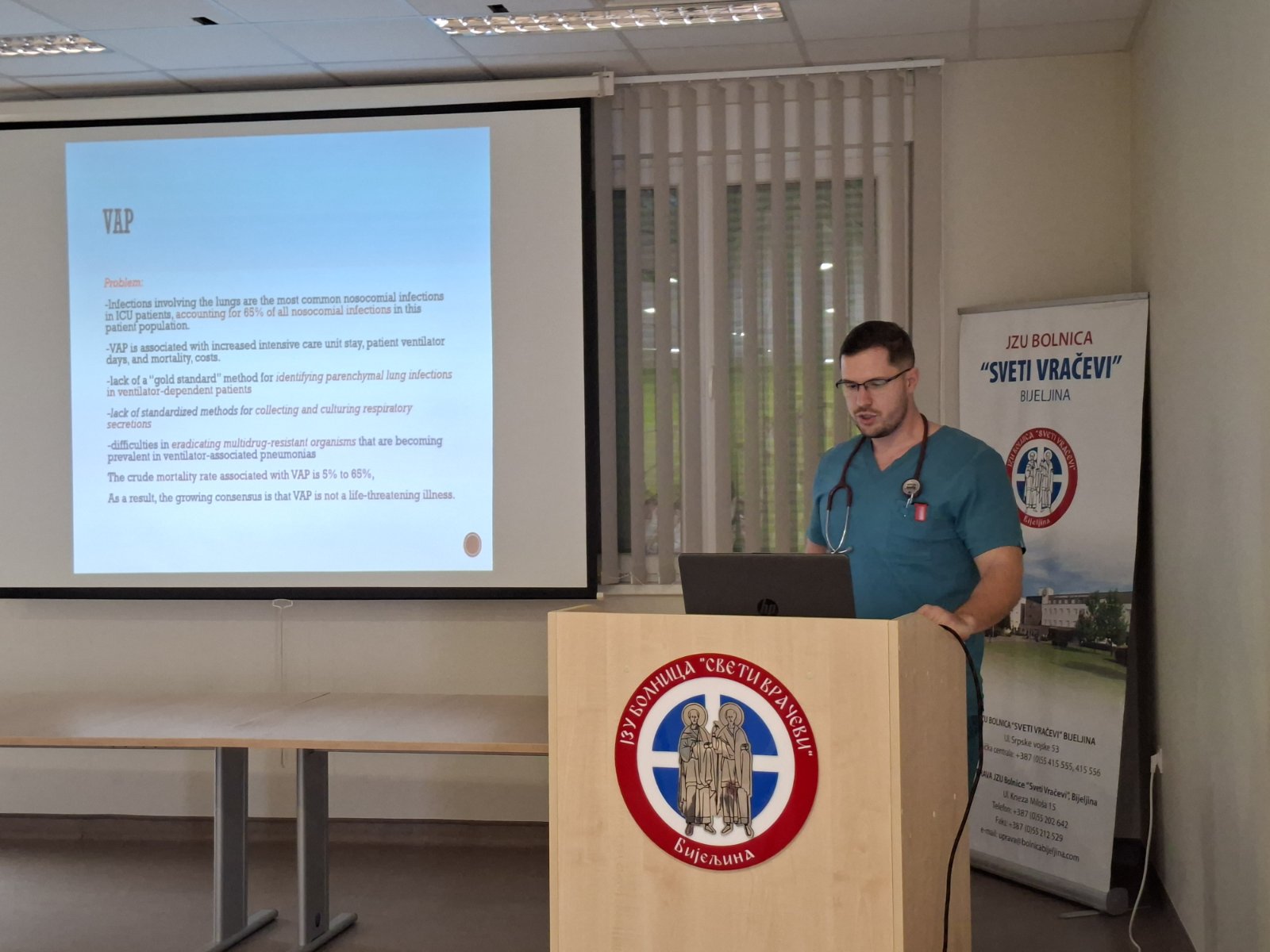 “Pneumonije danas” tema je predavanja koje je održala specijalista pulmologije dr Gordana Ignjić Ćato dok je specijalista anesteziologije, reanimatologije i intenzivne terapije dr Boris Jovanović održao predavanje pod nazivom “Ventilator – associated pneumonia (VAP)”. Tokom predavanja predstavljeni su savremeni pristupi dijagnostici, terapiji i zbrinjavanju pacijenata sa pneumonijom.