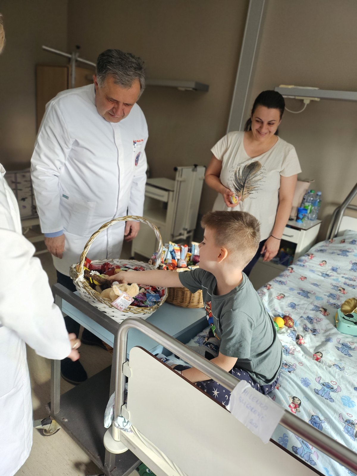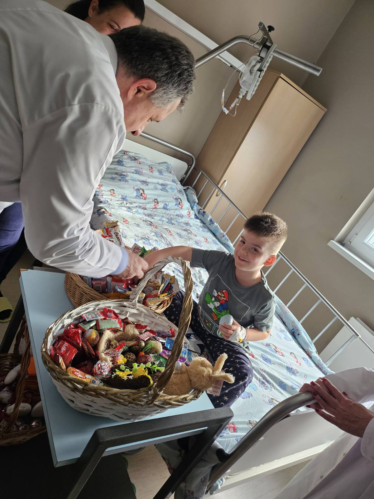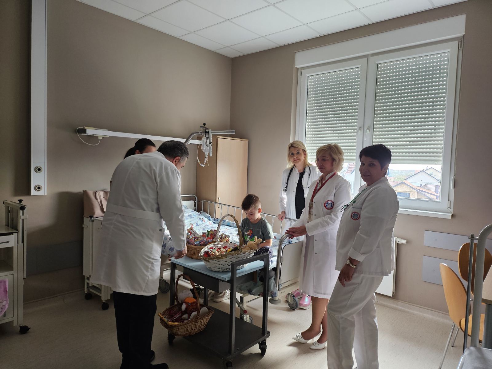 Direktor JZU Bolnica „Sveti Vračevi“, prim. dr Mikajlo Lazić, zajedno sa prim. dr Nelom Mitrović i načelnicom Odjeljenja za pedijatriju prim. dr Ružicom Borović obišao je na vaskršnje jutro najmlađe pacijente.